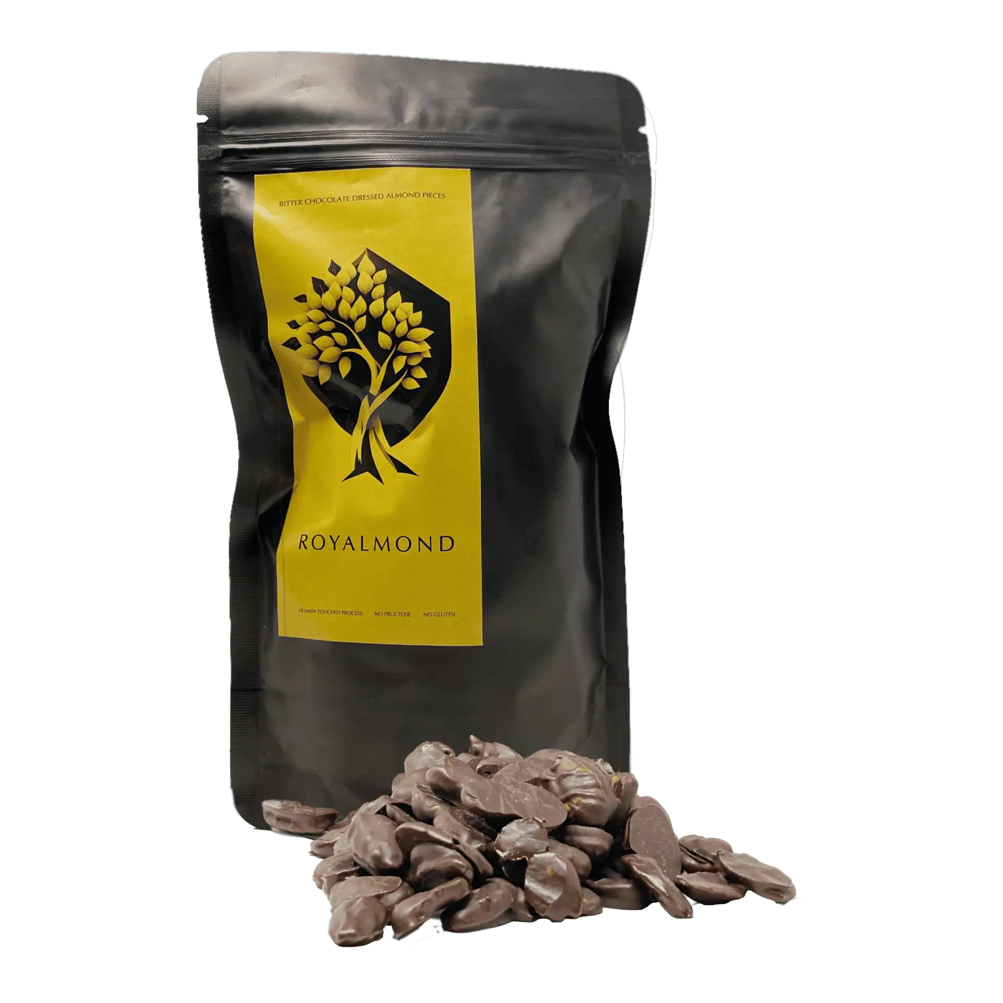 Royalmond Dark 70, Türkiye’nin en özenle üretilmiş çikolatalı bademli atıştırmalıklarından biridir. %70 kakao içeriğiyle gerçek bitter çikolata severler için özel olarak geliştirilmiştir. Her bir Türk bademi, el ile seçilerek tek tek bitter çikolata kaplanmaktadır. Rafine şeker kullanımı minimumda tutulmuş; doğal kakao aroması ön plana çıkarılmıştır.