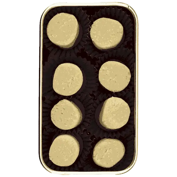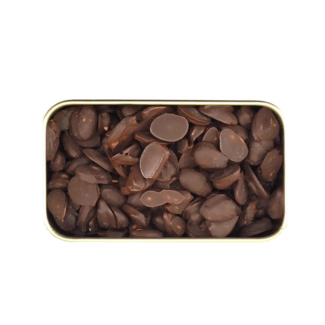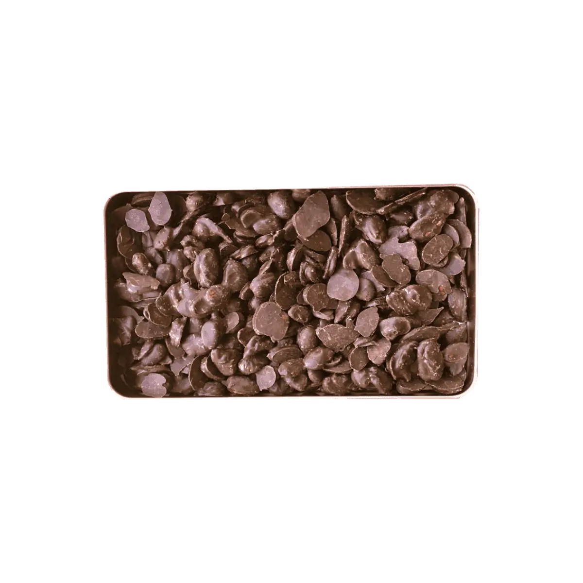 Gana, Ekvador ve Venezuela kakao çekirdeklerinin harmanından elde edilen bitter çikolata — koruyucusuz, parlatıcısız, yapay aromadan uzak. El yapımı, siparişe özel, gümüş metal kutuda sunulan bir gurme deneyimi.